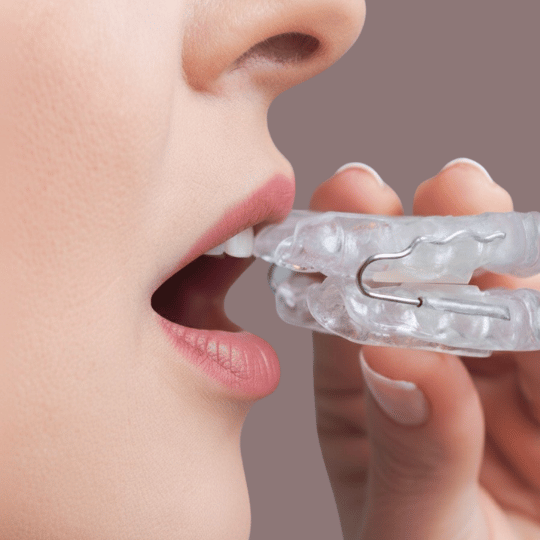O ronco é o som produzido pela vibração dos tecidos da garganta. Já a apneia é a interrupção da respiração durante o sono, que pode causar sérios problemas de saúde. Ambos podem ser tratados com aparelhos intraorais.