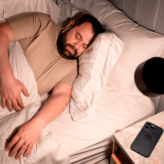 É muito simples! Você recebe um dispositivo portátil que monitora seu sono durante a noite no conforto de sua casa. No dia seguinte, os dados são analisados e você recebe o resultado diretamente no seu celular.